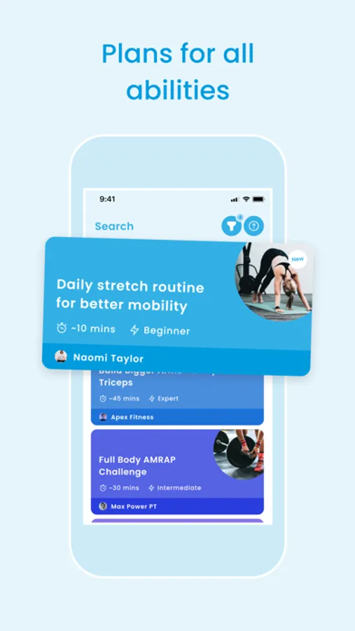Whether you’re an absolute beginner who needs help getting started, or an experienced trainer seeking inspiration, we have plans for every level. Our comprehensive exercise library includes video instructions, bespoke exercises and additional elements such as impact, health & skill-related tools. If you’re still a bit stuck or need more specialised help, use our directory to track down fitness professionals in your area, or globally.