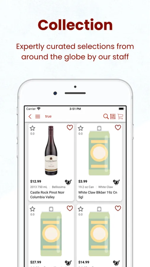 With the App you can browse for the wines & spirits available in the store, and also order a delivery or pickup.