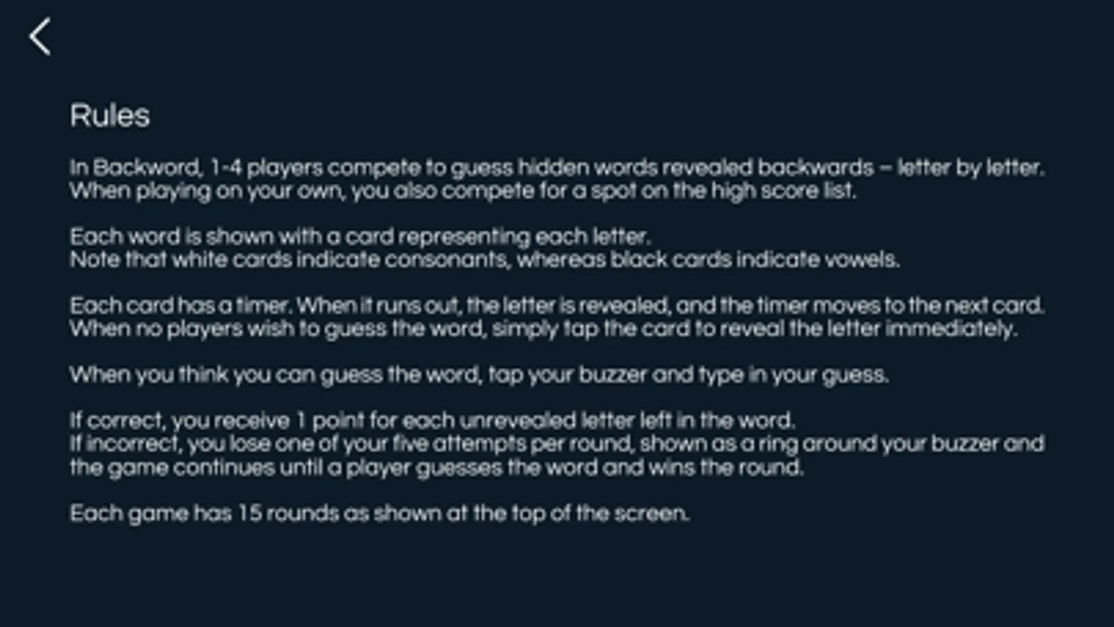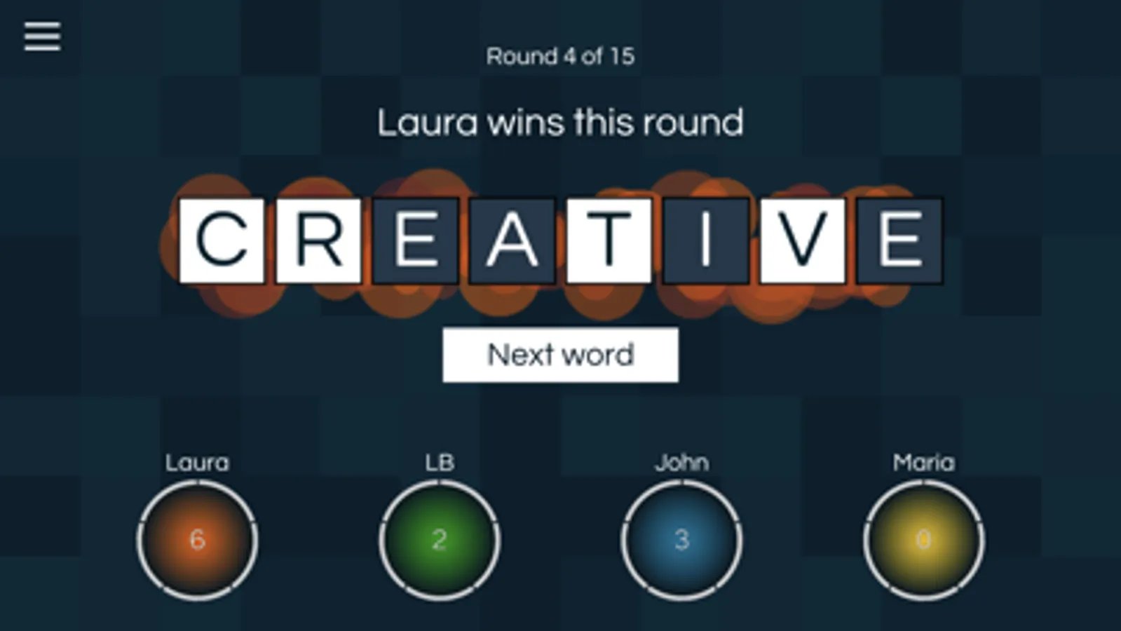 Words are gradually revealed - letter by letter - starting with the last letter, the second last letter, etc. etc.