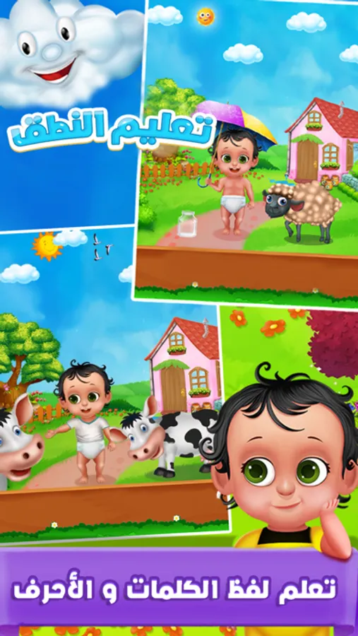 تعليم النطق لعبة مخصصة للاطفال لتساعدهم على تعلم النطق والاستماع للحوارات التي تدور بين الاطفال ضمن اللعبة