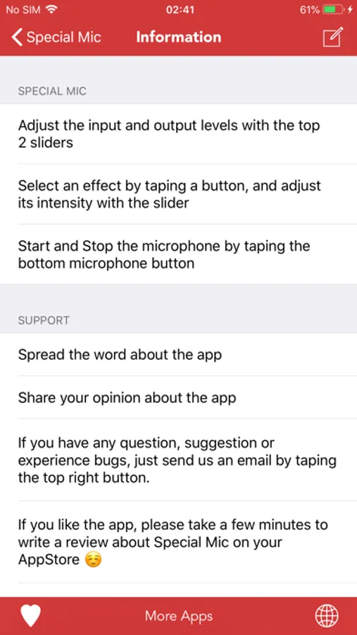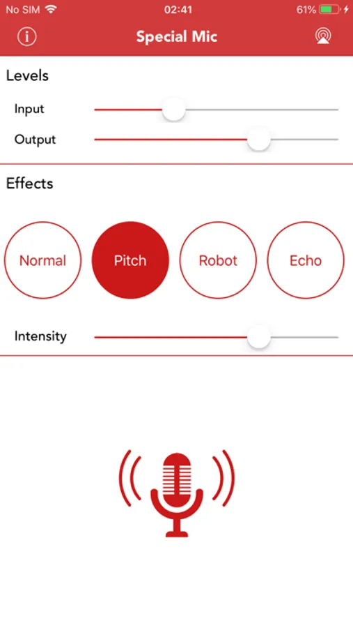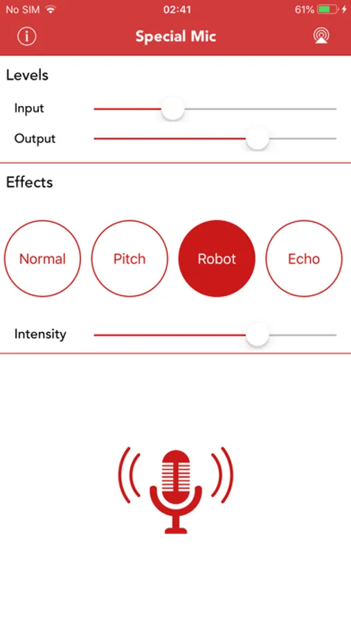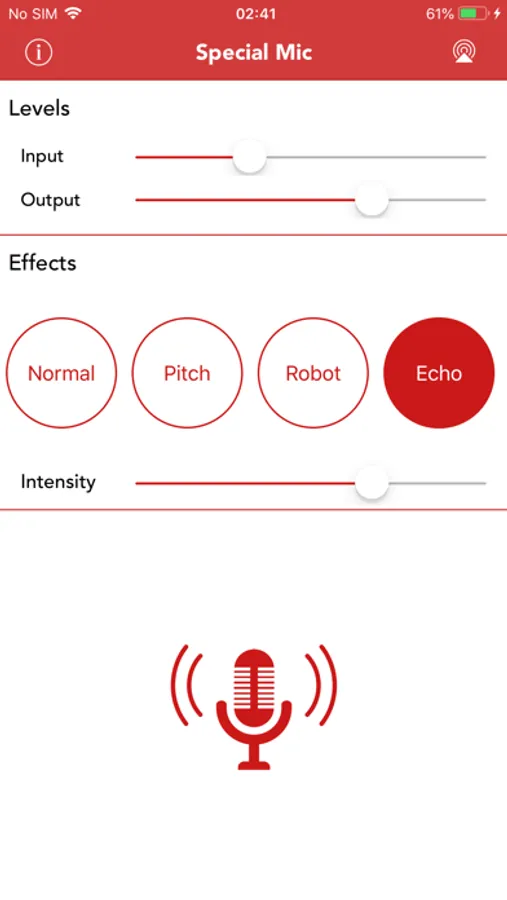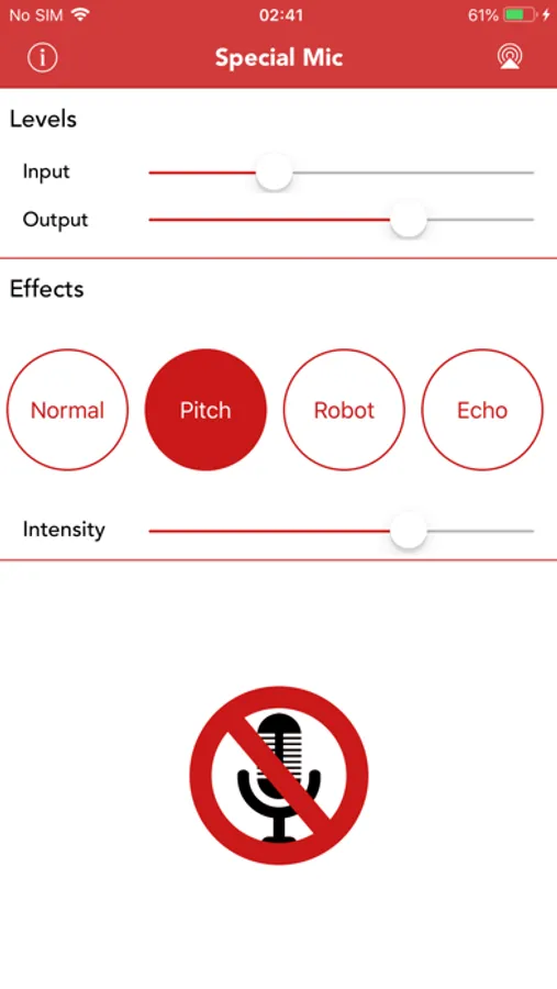 Very simple to use: just pick an effect, adjust its intensity and start transmitting your modified microphone signal to remote speakers, or to your device speaker or headset.