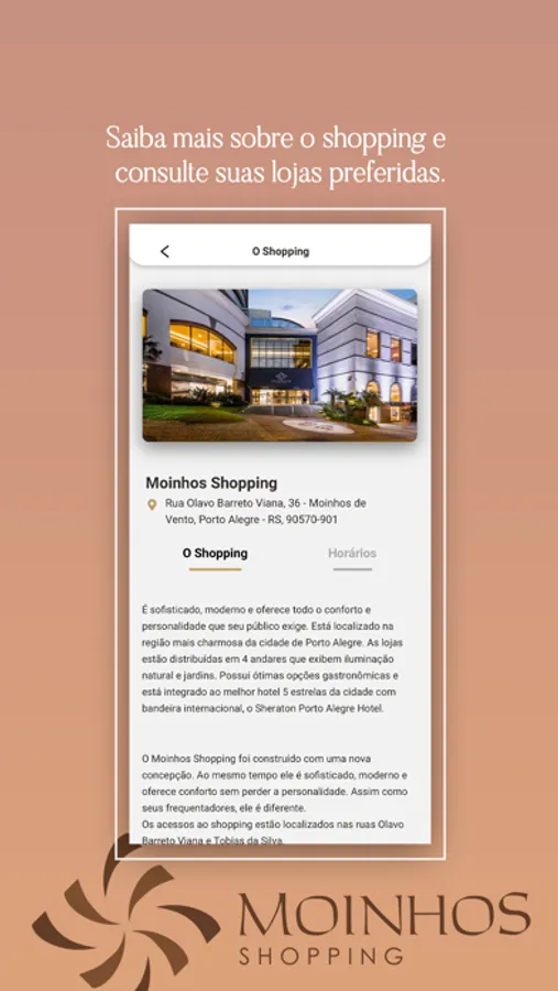 Um aplicativo de smartphone para todos os clientes que frequentam, assim como visitam, o charmoso Moinhos Shopping. Não há melhor maneira de maximizar sua experiência de compra, seja em casa ou no shopping. Então baixe o aplicativo oficial do Moinhos Shopping hoje.