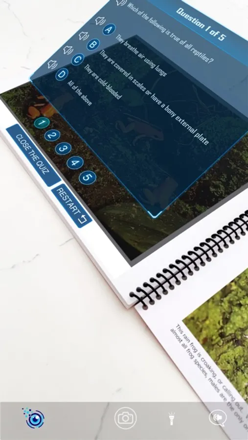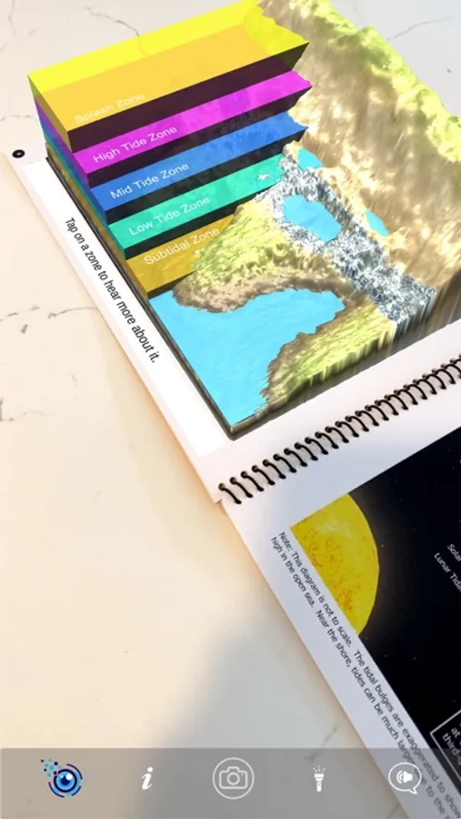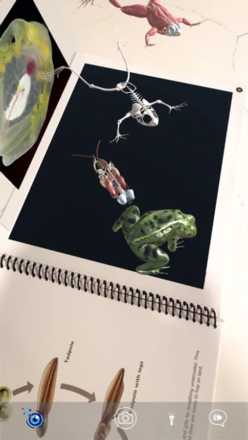 See still images turn into videos, complete with sound. See interactive 3D models emerge from the pages or posters. Touch interactive elements to learn more and see 3D animations. Take an interactive quiz in Augmented Reality.