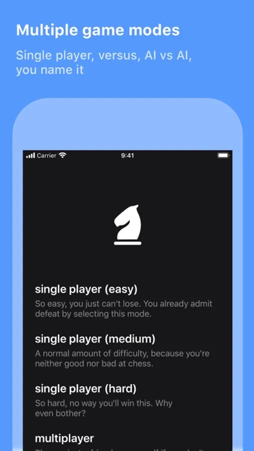 Chessmate allows anyone to dive into a game of chess. Whether you’re a beginner (yes, I’m talking about you) or a pro (hmm, debatable), the variety of game modes will challenge you with its witty AI. Play solo, or play against a friend (or against yourself if you don’t have any)… or even let an AI play against another AI. Go grab some popcorn.