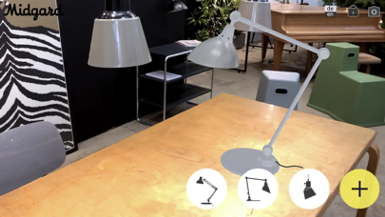 The Midgard AR App is capable of displaying and configuring multiple lamps at the same time. This enables you to place multiple variants and compare their look in the respective environment. We encourage you to walk around and inspect the photorealistic 3D models from every angle!