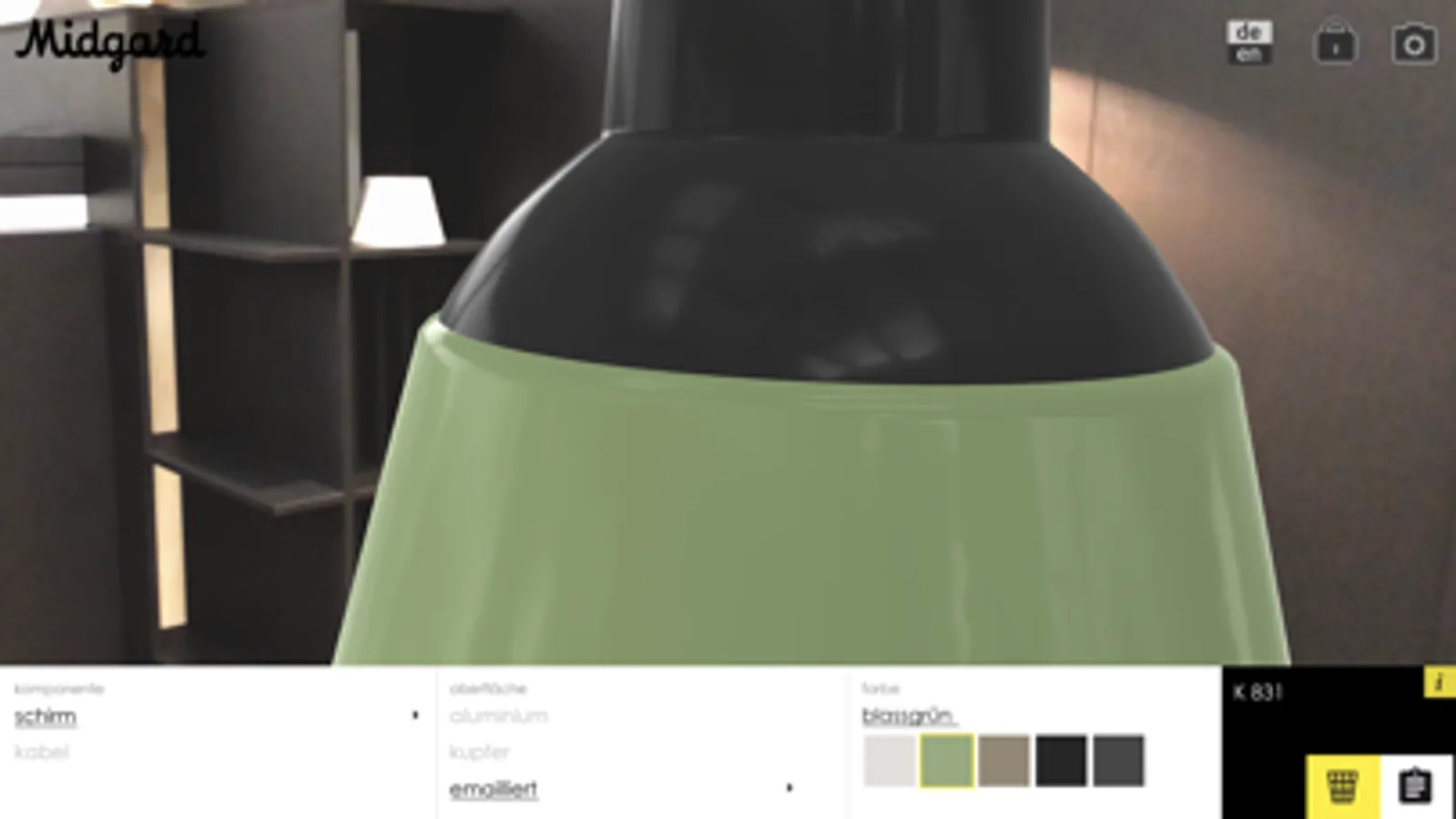 Configure the famous Midgard lamps in 3D with augmented reality technology directly in your home or office! The integrated configurator enables you to choose your favorite variant from the many thousands available and match it perfectly to your environment. Simply choose from the available colours, sizes, materials and combinations.