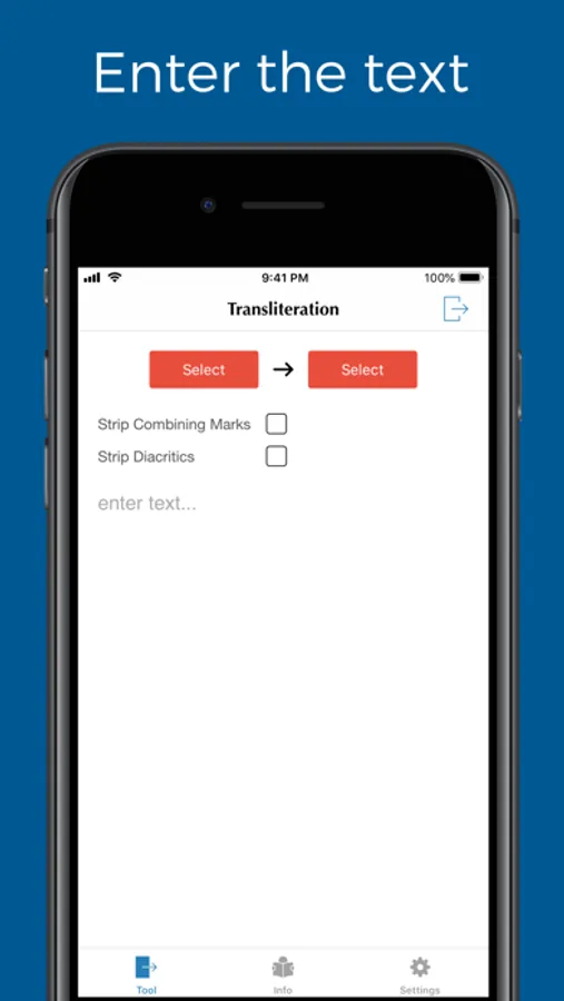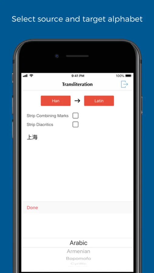 This app provides a tool for you to transliterate a text from source alphabet to another alphabet.