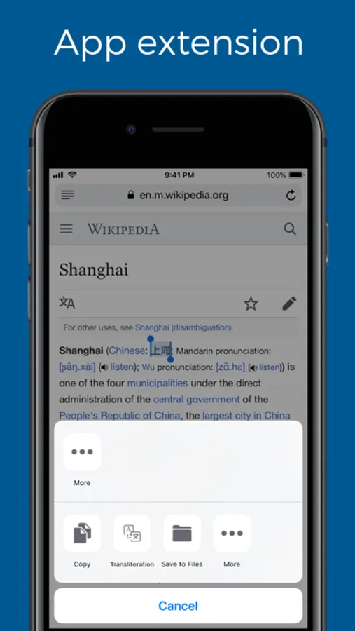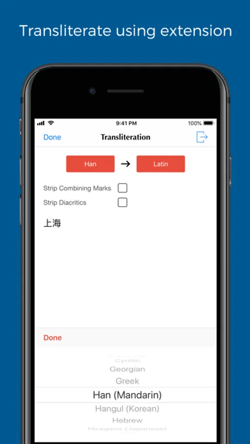 - When you browse a website and find some foreign words, you can select the words and choose “transliteration” extension. The app extension will transliterate the selected words to target script.