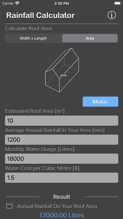 - You can add the cost of mains or tap water per M3 to evaluate the cost savings per year if this rainwater is collected and used instead of drinking water.