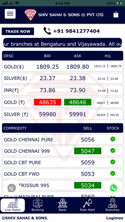 We offer Bullion - Gold & Silver at very competitive Prices. We have launched this mobile application to facilitate our clients to get live prices at any where and any time. Download this app to stay in touch with Bullion markets prices and news. This app brings you to monitor live spot prices for gold & silver, along with our commodity prices. And also we will update often current market features and news via notification.Stay on top market by watching live spot and our bullion price movements of gold and silver. Keep up with the options to set the rate alert is very useful in which users can set the rate alert and it will be notified once the rate reached. And the rate alert history shows the report of rate alerts with status of previous alerts.