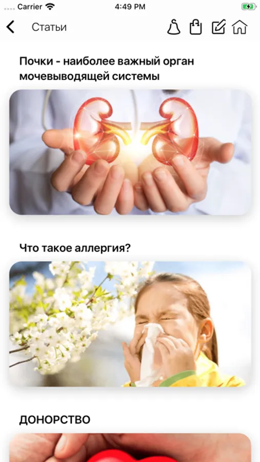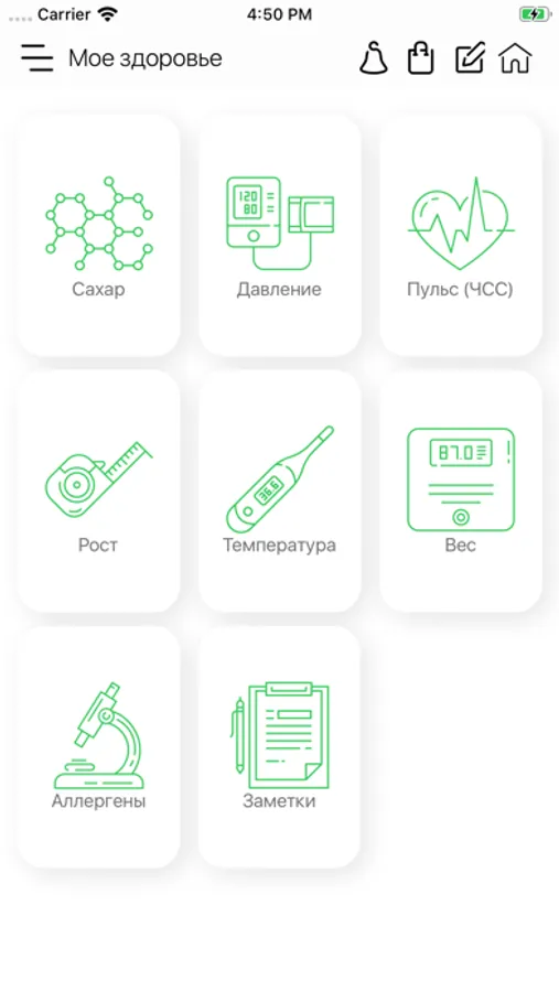 - раздел Мое здоровье, для отслеживания показателей организма и оценки в динамике