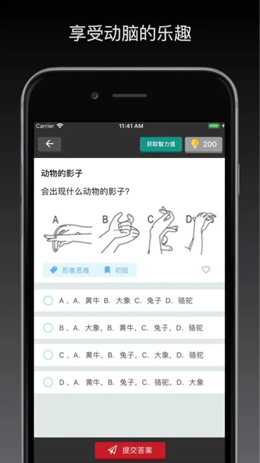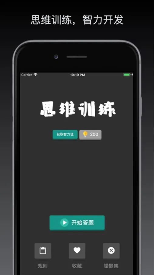 思维训练涉及算术类、几何类、组合类、推理类、创造类、观察类、想象类、文字类等形式,能帮助你迅速提高观察力、判断力、推理力、想象力、创造力、分析力、计算力、语言力、反应力、记忆力等各种思维能力。每一类游戏都经过了精心的选择和设计,每一个游戏都极具代表性和独特性,内容丰富,难易有度,形式活泼,让你不但可以获得解题的快乐和满足,还可以通过完成挑战活跃思维,全面发掘大脑潜能。