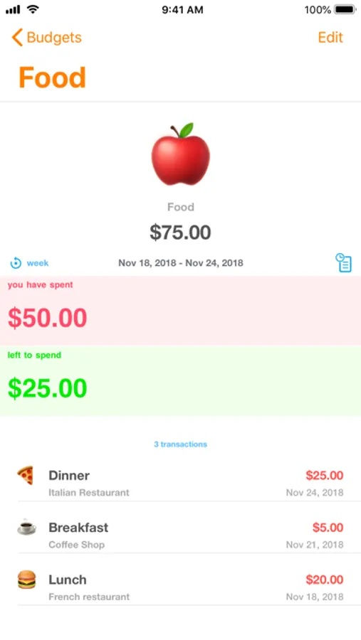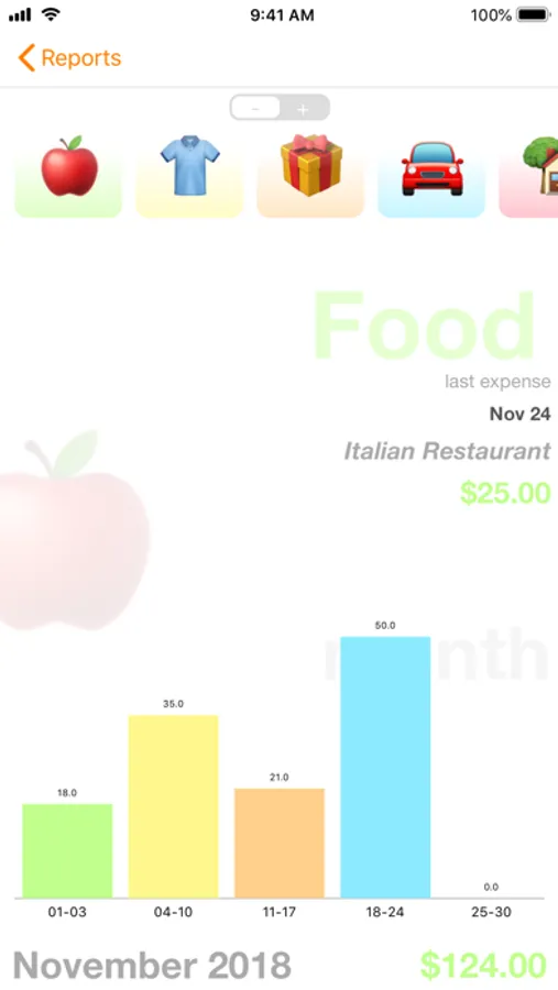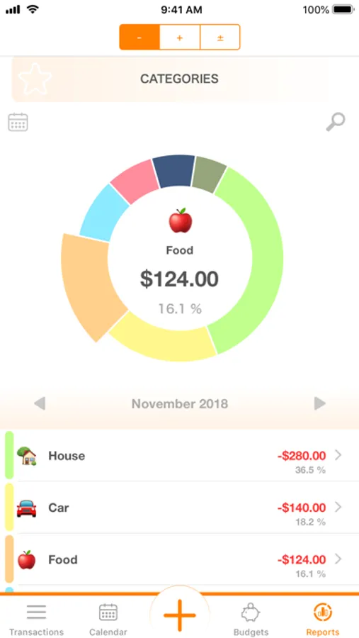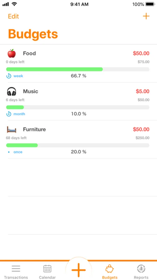 * Plan budgets for your expenses by setting your expense limit by category or subcategory. A visual indicator will help you keep it under control.