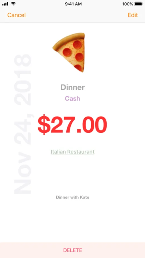 * Easily add your expenses choosing a category, a subcategory, a vendor and an account; you may also add your personal notes.