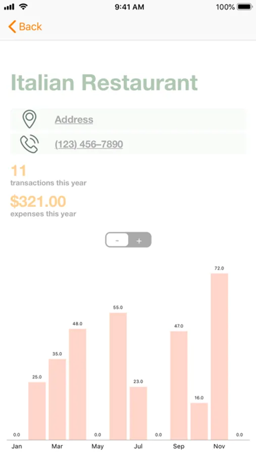You may specify a phone number or a location for each vendor. With a few taps you may call the vendor or open Maps to get directions.