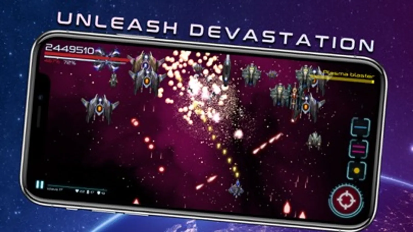 - Collect Shield, Weapon, and Health power-ups to help with the ever increasing might of the enemy.