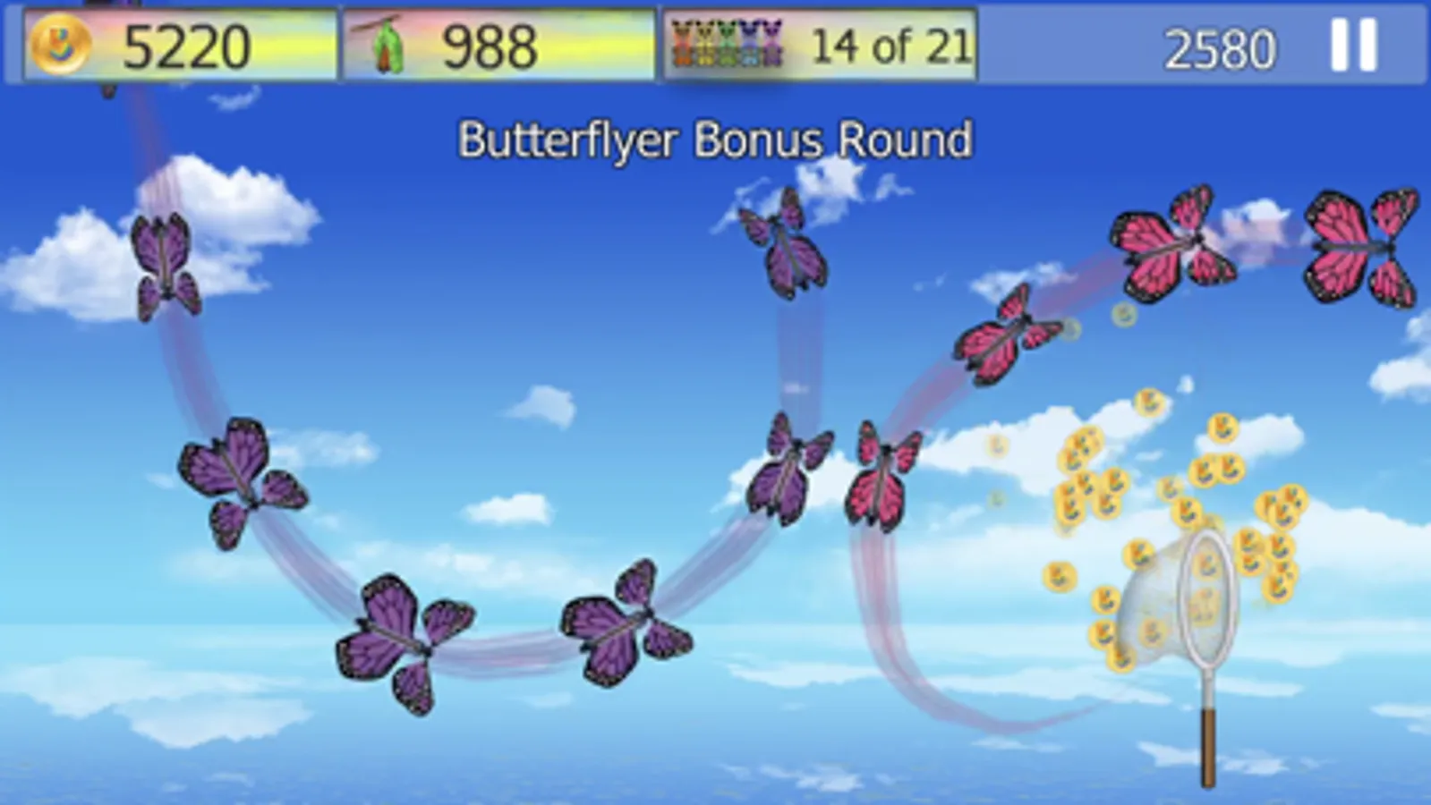 √ Catch all the Butterflyers you can to accumulate coins during game play.