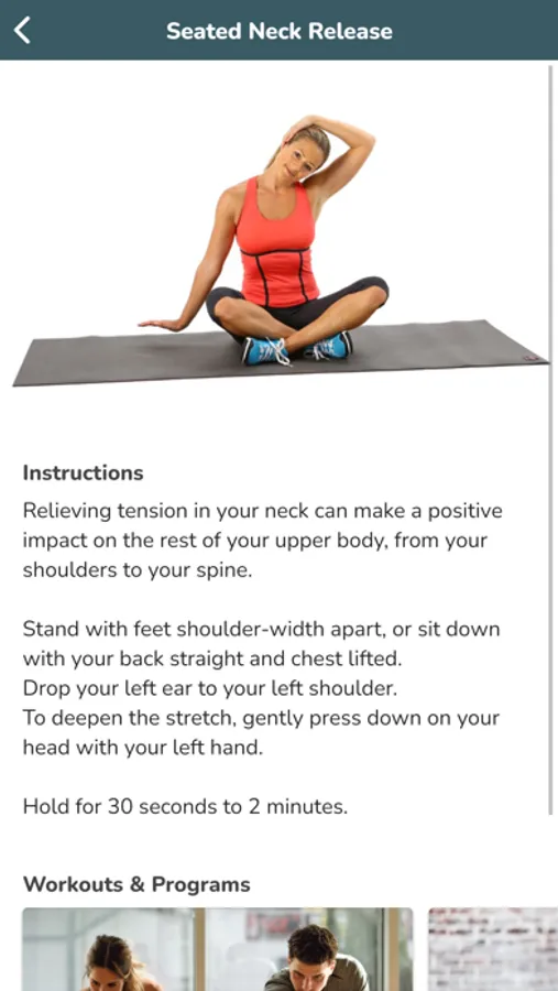 - Upper Body: upper back, chest, shoulder and neck stretches