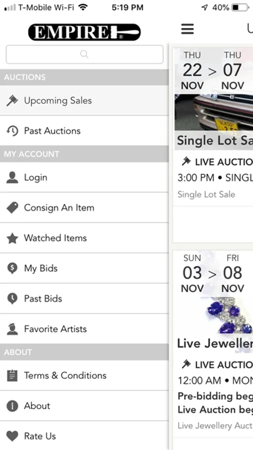 Empire Auctions is a Canadian owned auction company offering a multitude of articles for auction every month at each of our locations. The auctions offer fabulous items including antiques, jewelry and diamonds, paintings and sculpture, rare wristwatches and pocket watches, Persian rugs, furniture, silver, crystal, memorabilia, rare automobiles, porcelains, rare coins, stamps, and much more. With the Empire Auctions app, you can preview, watch and bid in our auctions from your mobile / tablet device. Participate in our sales while on-the-go and gain access to the following features: •Quick Registration •Following upcoming lots of interest •Push notifications to ensure you engage on items of interest •Track bidding history and activity •Watch live auctions