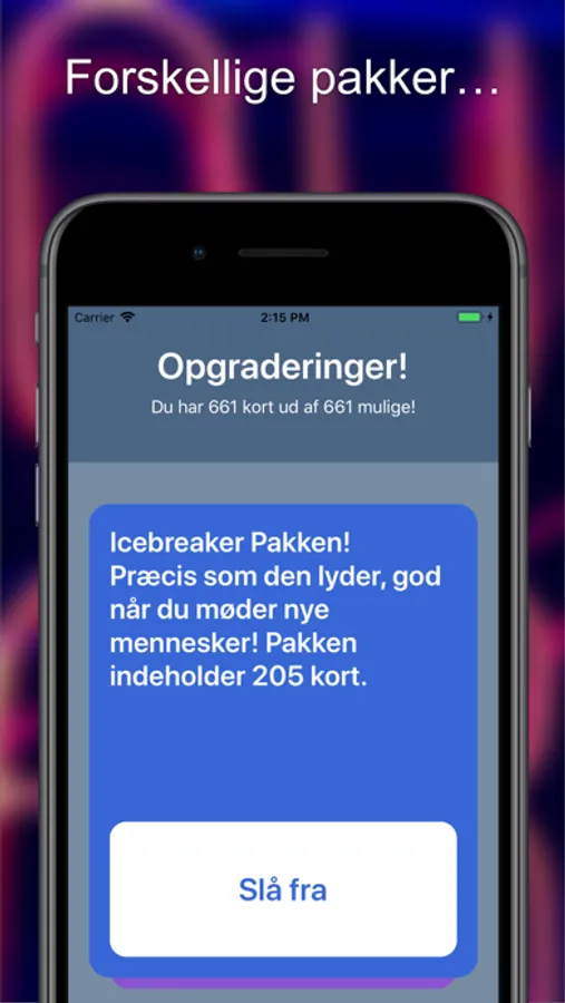 I appen er der 4 forskellige kort pakker, den første får du gratis!