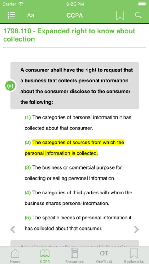 • Capability to fully search the CCPA text
