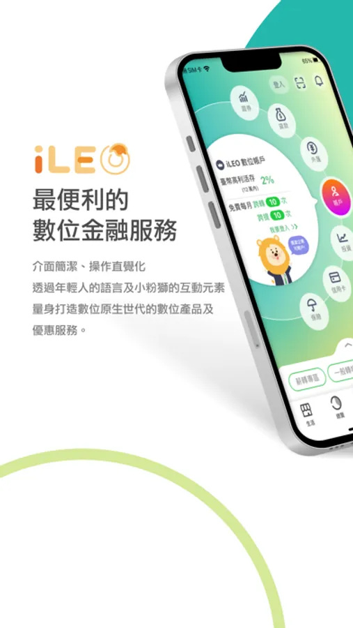 第一銀行推出專屬數位族群行動銀行APP「iLEO」,以「簡單、快速、創新、最懂你」為核心價值,強調介面簡潔、操作直覺化、直白的語言及小粉獅吉祥物元素,為數位原生世代量身打造日常金融的最佳夥伴!