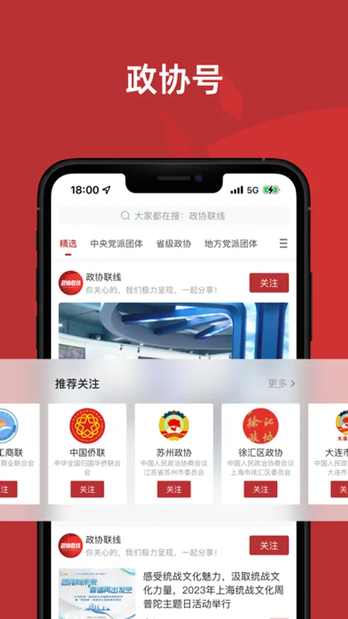 各地政协、党派团体以及政协委员、党派团体成员等陆续入驻,发布相关信息,你可关注感兴趣的政协号,与其交流互动;