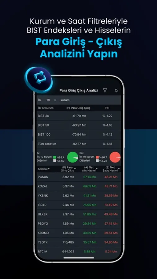 Borsada işlem gören şirketlerin bilanço, şirket kartı, takas, sermaye artırımı gibi bilgilerine kolayca ulaşarak analiz yapabilirsiniz. Aracı kurum dağılımı, kademe analizi, derinlik ve emir defteri verilerini anlık olarak izleyebilir, en çok yükselen, düşen ve işlem hacmi en yüksek olan sembolleri gerçek zamanlı olarak takip edebilirsiniz.