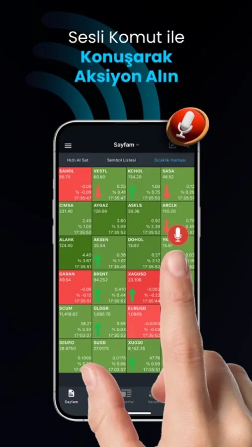 Sesli Komut vererek emir gönderebilir, takip ettiğiniz enstrümanlara ait veri ve analizlere sesle erişim sağlayabilirsiniz.