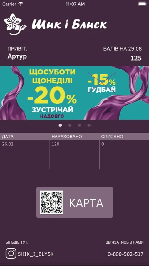 Більше ніякого пластику! Тепер мобільна картка завжди з тобою. Завантажуй додаток, отримую кешбек та витрачай бали.