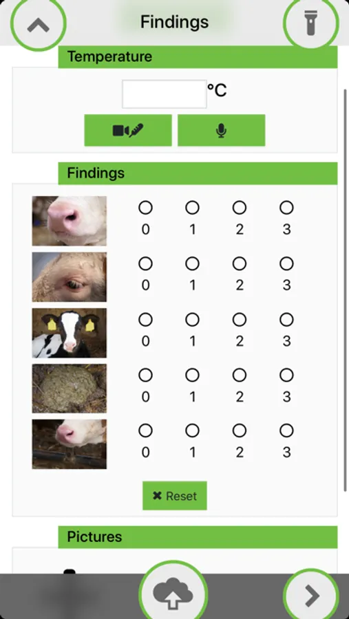 The CalfApp VITAL offers the possibility to record different health-relevant parameters such as faeces and nasal discharge for each animal. It also contains the function to receive and process the temperature values of suitable Bluetooth thermometers.