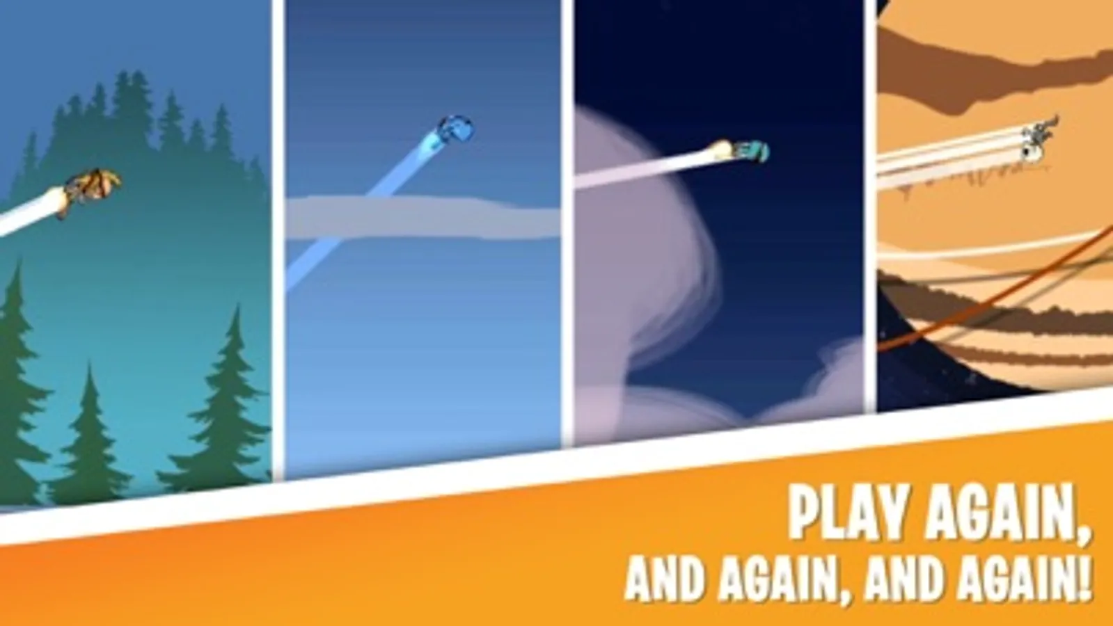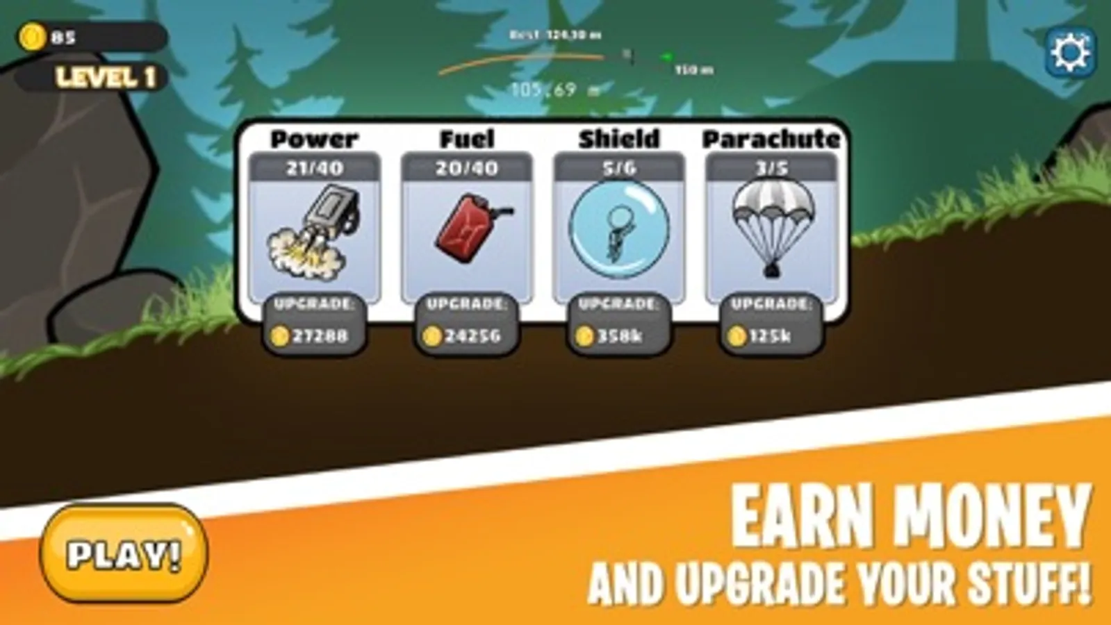 Unlock wacky characters, fly to record distances and crash to the ground. Complete special milestones to earn coins, and unlock upgrades and special powers for your jetpack. Fly, bounce and parachute to the stars!