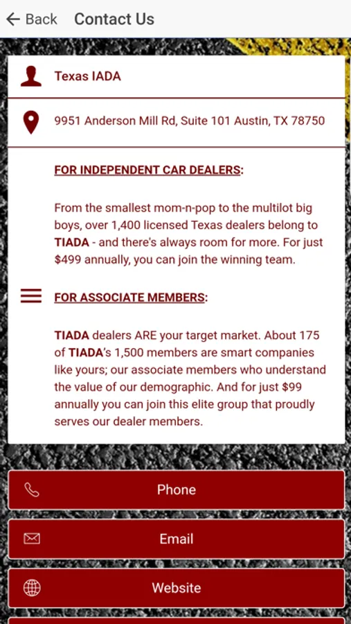 This is the official mobile app for the Texas Independent Auto Dealers Association.