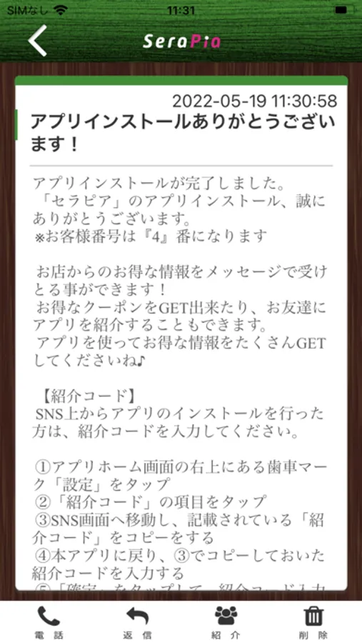 SeraPiaのアプリをSNSを通じてお友達に紹介する事ができます。