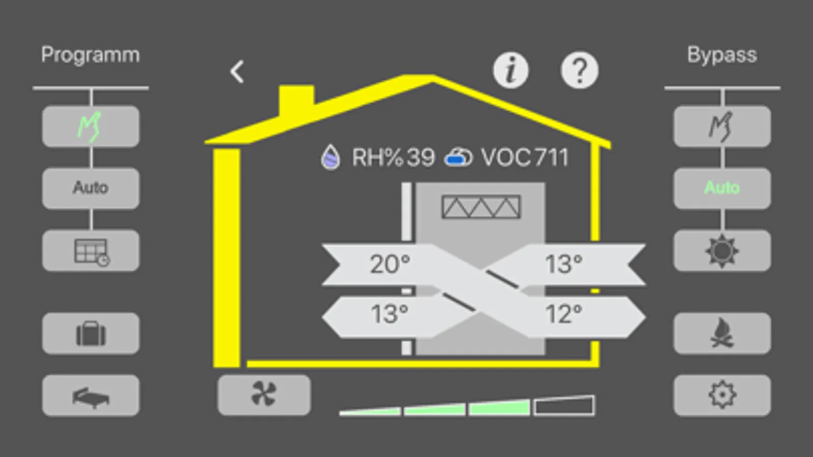 - indication of humidity/air quality (only if the respective sensors have been installed)
