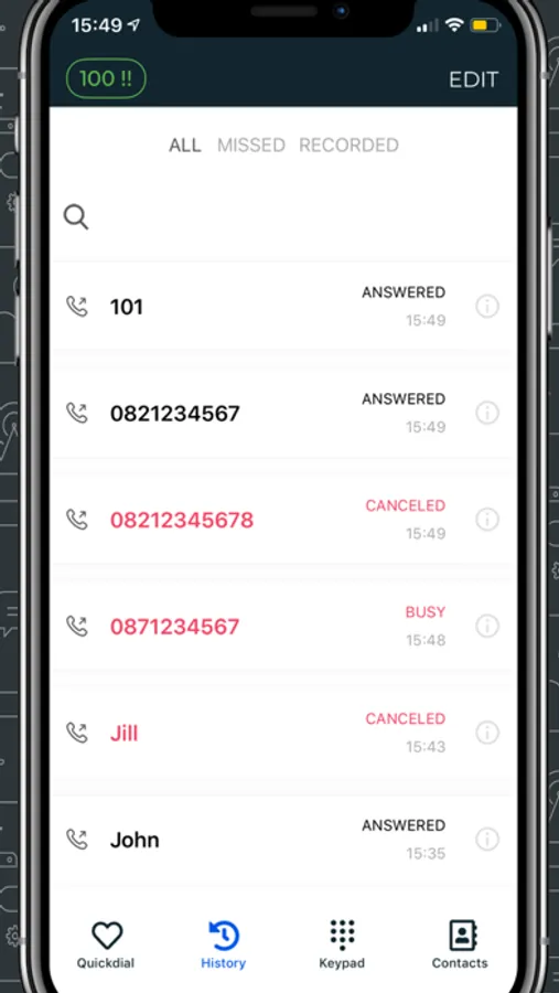 The PockITDial Phone can be notified of incoming calls using the push notification service, so you can save battery while still being available for any call.