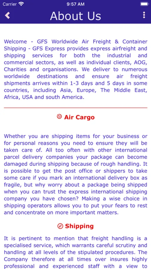 Welcome - GFS Worldwide Air Freight & Container Shipping - GFS Express provides express airfreight and shipping services for both the industrial and commercial sectors, as well as individual clients, AOG, Charities and organisations. We deliver to numerous worldwide destinations and ensure air freight shipments arrives within 1-3 days and 5 days in some countries, including Asia, Europe, The Middle East, Africa, USA and south America.