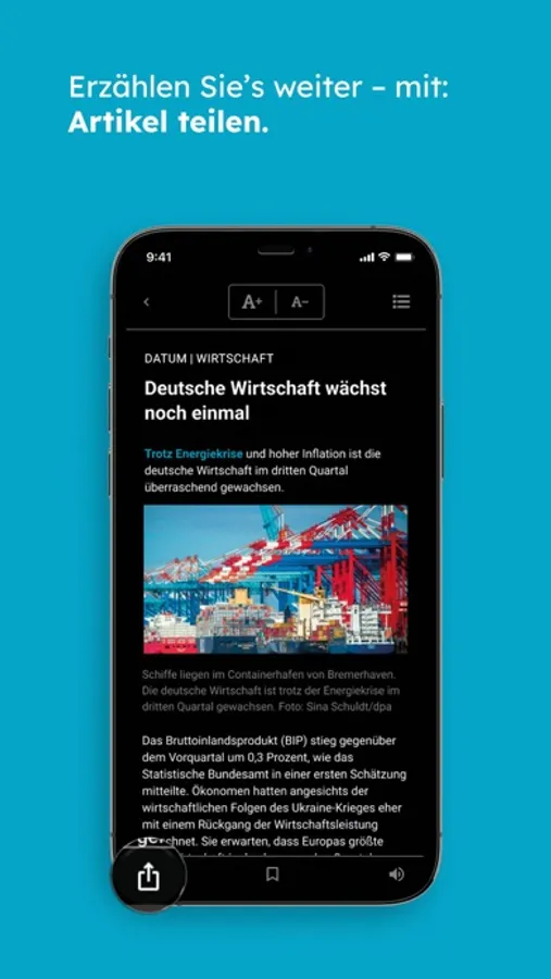 Erzählen Sie es weiter: Interessante Artikel auf Knopfdruck mit Ihrer Familie, Freunden oder im Social-Media-Feed teilen.