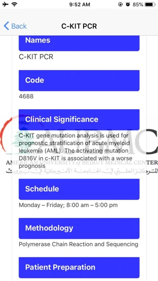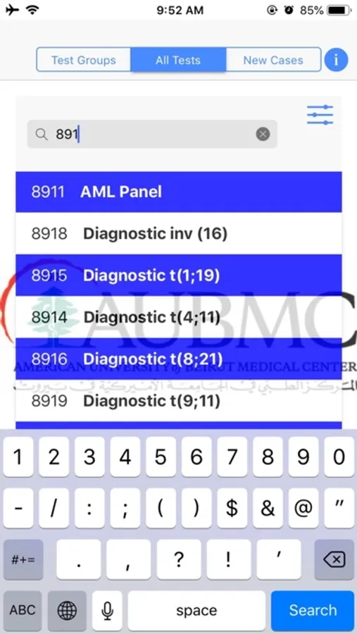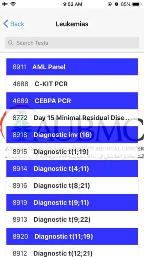 Molecular Lab Guide application helps users search through various tests and test groups, with the ability to view details of any available test at AUBMC molecular lab.