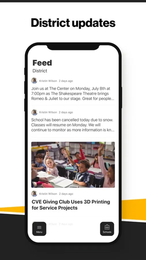 In the Live Feed is where you’ll find updates from the administration about what’s going on in the district right now. Whether that’s celebrating a student’s success, or reminding you about an upcoming deadline.