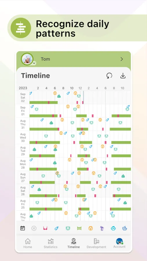 Monitor your newborn's sleep schedule, see naptime patterns and find baby feeding trends.
