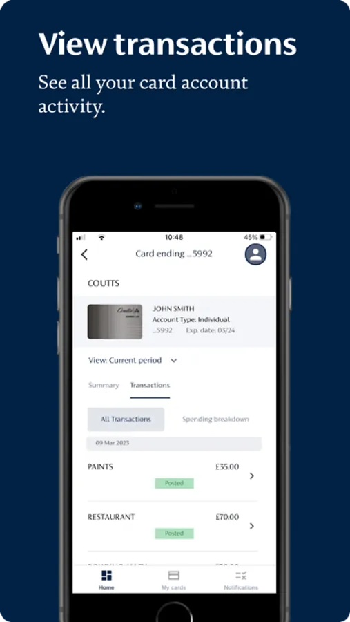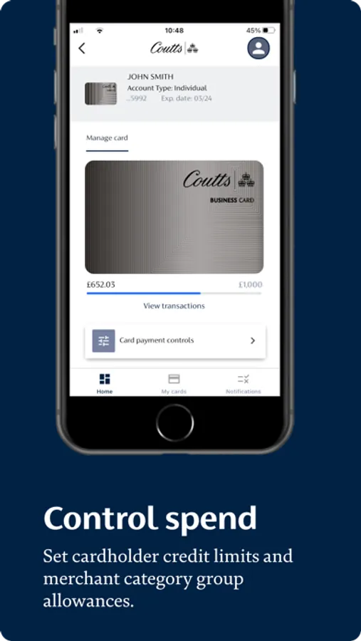 Coutts ClearSpend is available to eligible Coutts Business and Commercial Card account customers with compatible iOS devices and a UK or international mobile number in specific countries. Over 18s only, other terms and conditions apply.