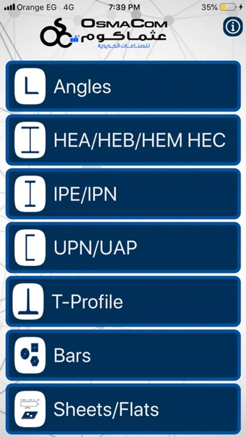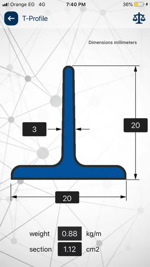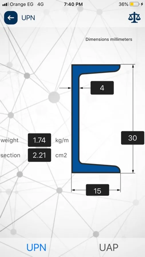 OsmaCom Steel Profiles App for iPhone shows the main dimensions, meter weights cross sections of series IPE, IPN, HEA, HEB, HEM, HEC, UAP and UPN steel beams. Angle iron, plate and steel bar as well as scales to calculate steel flats.