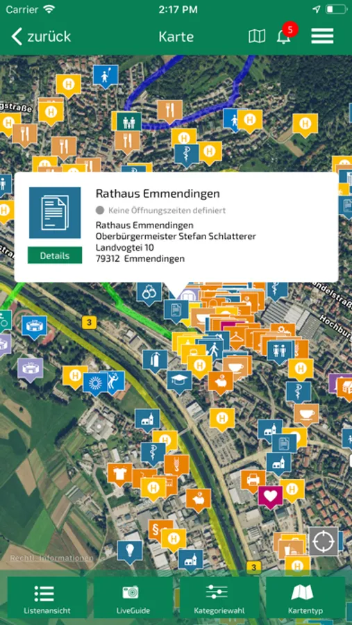 Die App verfügt neben der Karten- und Satellitenplan-Funktion auch über eine „Augmented Reality-Anwendung“. Sie öffnen die App und betrachten über die Kamerafunktion Ihres mobilen Gerätes den Ort und die Objekte und es können direkt Informationen abgerufen werden.