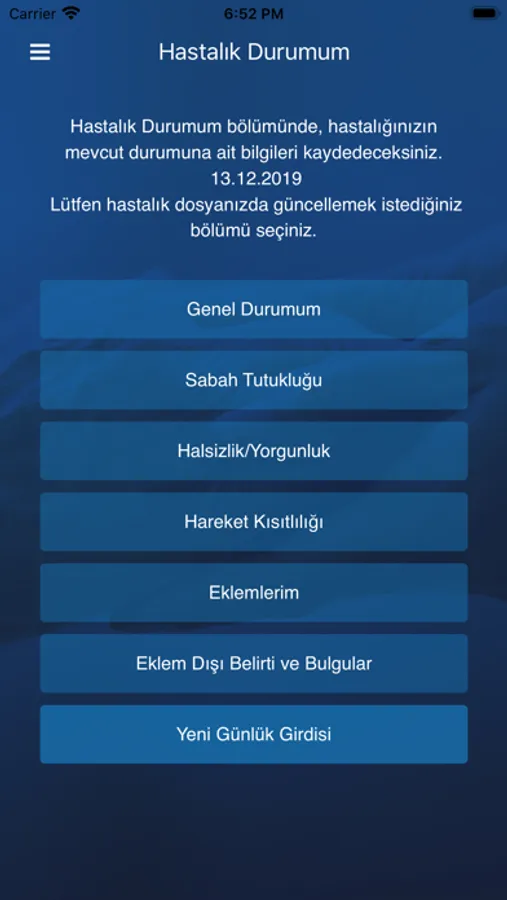 RApro uygulaması, romatoid artrit hastalığınızı etkin bir şekilde izlemenizi ve kayıt altına almanızı sağlamak amacıyla hazırlanmıştır. Bu uygulamada hastalığınıza ilişkin şikayetlerinizin varlığı ve yokluğunu, şiddet derecesini kaydedebileceksiniz. Bunun yanı sıra ilaçlarınızı, raporlarınızı ve randevularınızı da kaydedip, izleyebilirsiniz. RApro uygulamasını hemen indirin ve kullanmaya başlayın.