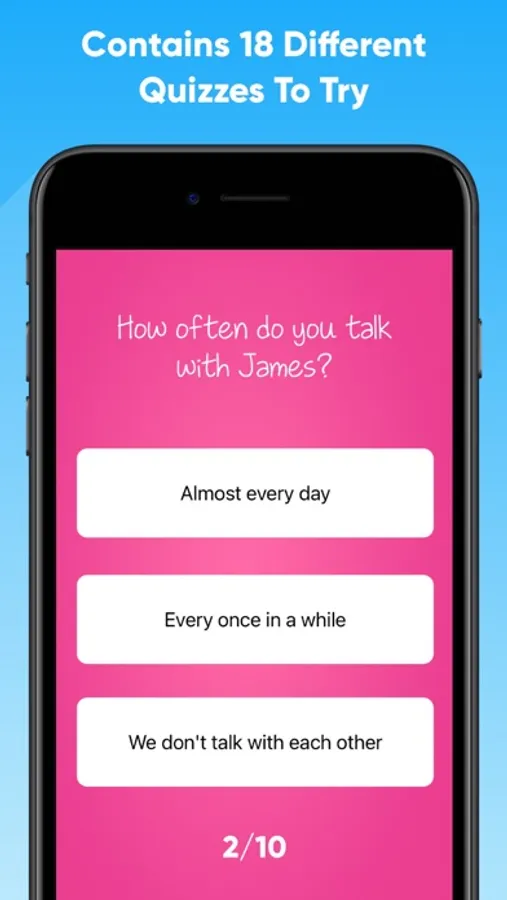 You can take a quiz whenever and wherever you want, making it perfect for those moments when you're feeling unsure about your crush's feelings. And with 30 different quizzes, you can try out different combinations of questions to get a more nuanced understanding of your crush's level of interest.
