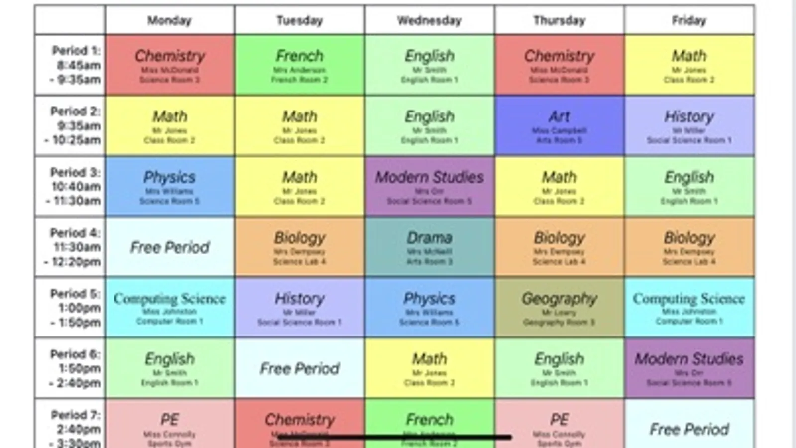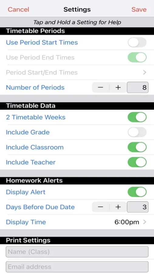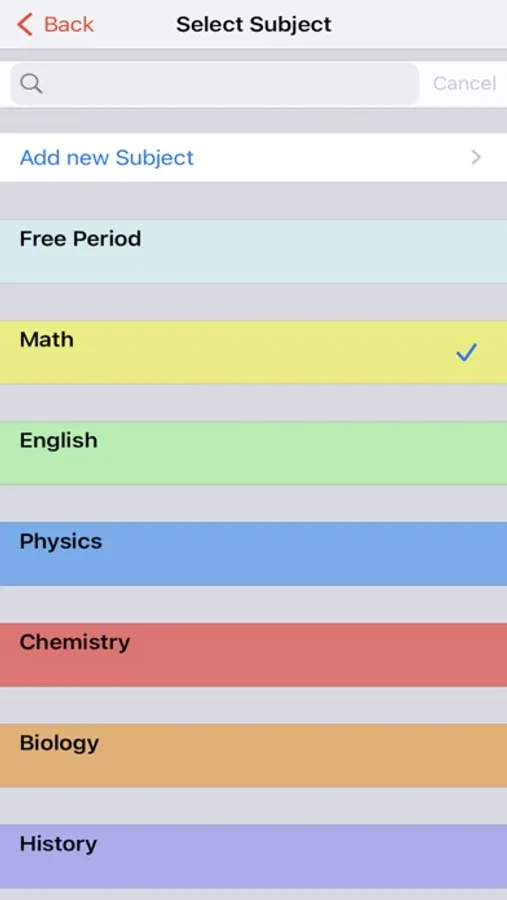 - You can select the colors for each subject, and there are various other settings allowing you to configure the app as required.