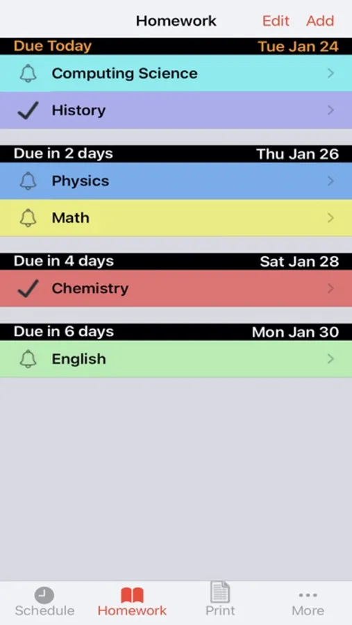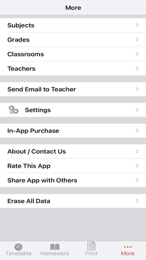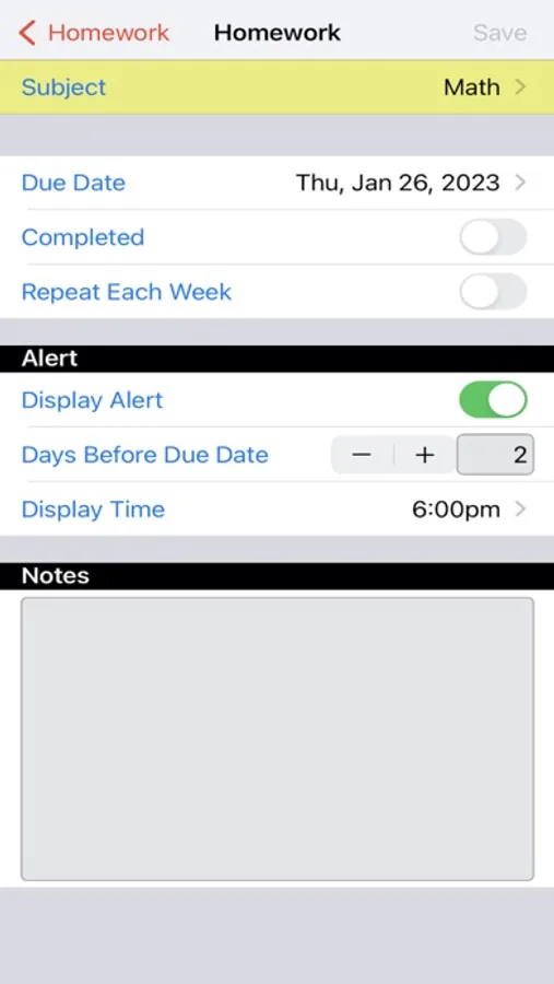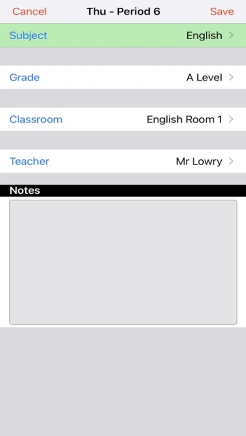 - You can enter details of all of your subjects, teachers, classrooms and homework, and can enter notes for each of them.