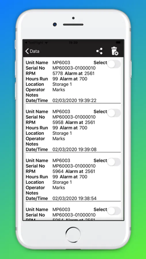 The operator can collate information with the data logging functionality, which allows vital information to be stored and shared between engineers at the touch of a button.