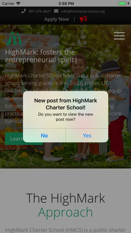 This app is intended for parents and guardians of students who attend HighMark Charter School in South Weber, Utah. The app allows parents to receive notifications on their devices when the school posts new information to the school website. Tapping these notifications will take the user directly to the new information on the school's website. Further the app can be used as a convenient bookmark for the school's website providing rapid access to school information and school contact forms, especially the Excuse Absence form.